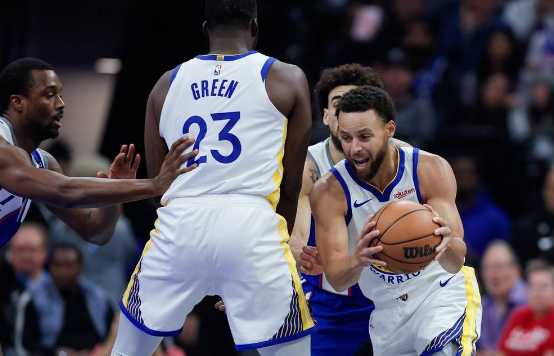 勇士队首发:安德鲁-维金斯、斯蒂芬-库里、克莱-汤普森、德雷蒙德-格林、凯文-卢尼